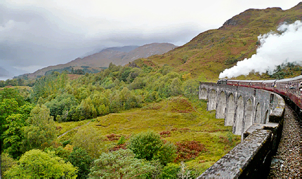 | PHOTOS: Above (right): Glenfinnan Viaduct - I was hanging out of the window. clicking away just in case! What a pity some people can only relate to it because of Harry Potter, rather than for its own merits! Left (left to right; top to bottom): contemporary mural on a warehouse in Mallaig; Full steam through the West Highlands; Typical Scottish weather- sunshine through the rain; Fishng boats at Mallaig For further information about rail holidays such as the West Highland Line, or even steam day trips like the Settle and Carlisle railway, check out Statesman Rail - www.statesmanrail.com |