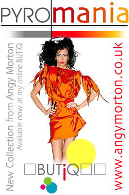 PYROMANIA py-ro-ma-nia: - an irresistable impulse to set fire to things for personal gratification PYROMANIA py-ro-ma-nia: - the exciting, new collection from Angy Morton PYROMANIA is my new concept collection, a mix of limited edition 'hand made' lines, which can be made to measure on order, and designs which will subsequently be manufactured in the United Kingdom as limited edition 'prêt-à-porter' lines. The 'hand-made' range will be available from my new online BUTiQ from October 2010, and exclusive runs of 'prêt-à-porter' designs from select boutiques or online, later in 2010. See BUTiQ for further details and regular updates |