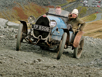 | The reason for my return visit was to experience the Honister vintage car rally - a trial of endurance with valuable old crocks put through their paces on the old miners' road, an excruciating, 1 in 3 gradient track which leads up to the slate quarries on Fleetwith Pike. You will be forgiven for thinking me completely mad when I tell you that I was also warned that it is traditional for the event to be blessed with torrential rain and wind. Well it is November! However, as you can see from our pictures we fared rather well. The day started with sunshine and a mirror-like Derwentwater to captivate us. There was a brief shower at one stage but all in all we were very lucky. The cars were really incredible - somebody told me how much some of the old Bentleys and Bugattis were worth but I'm afraid the figures quoted were beyond my comprehension. All I can say is that some people have more money than sense - especially when you see what they are putting these valuable vehicles through - covered in mud and dust, skidding and skating on loose stone, and swerving round hairpin bends between crags and a sheer drop to the valley below! Mad! Completely mad! But what fun! Anyway, take a look at the pictures and judge for yourself, and when you have a second click onto honister.com and check out their video clip of the Bugatti. |