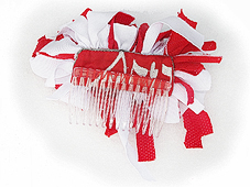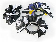 | Meanwhile, as you can see Ive been very busy. I have come up with a few ideas such as these 'proddy' wristbands, hair clips and other accessories. The techniques of 'proddy' and 'clippy' were developed in the North as means of creating rugs and mats from rags. The pieces of fabric are poked through hessian matting using either poroddy or clippy tools. It is a great way of recycling fabric. With one you are pushing the fabric through, with the other you are hooking it through and twisting it. I have made these accessories using the proddy method. Each is completely unique and those available so far are in team colours. I can also make the wristbands to order. Take a look on my BUTiQ for m full range of designer fashion accessories. |