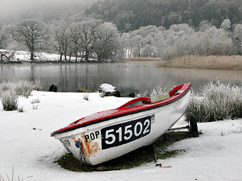 | 6 December 2010: WINTER WILDERNESS I had just woken after a long, late night working on my e-butiq when the sun came out briefly. I had only just opened my eyes when a voice from the office said, "Get your coat on, were going out!" What? NOW??? What about my coffee and how about brushing my teeth?" "No...OUT, NOW." So you see the advantage of living in the Lakes in the winter. You dont have to wash your face or brush your teeth, what for?...you can get away with being a grubby cave woman or you just get a handful of clean snow ... plenty around for more than just one face )) Well, it was worth it, The sun was trying very hard to break through the early morning mist in the valley, so you had bits of light catching a white tree here and there, or a duck's tail or even a goose. All I can say is that nature gives you as much as you are ready to take ... and today she didnt disappoint. The frozen, white trees were absolutely stunning, whie the lake looked like it was boiling and everything had a shade of blue. There was nobody about to share it with ... no tourists, not even any locals out walking their dogs ... just snowmen or snowwomen (?) welcoming you, or perhaps guarding the park...very suspicious, hmmm, or judging by their location I think they had, had a party. )) No wonder in this weather....you need a little bit more then just a sip of sherry to keep you warm. )) |