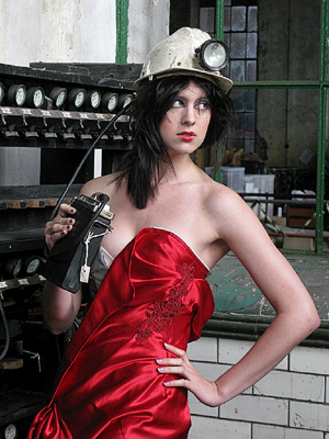 The dresses that were used in this fashion shoot are one-off couture designs made mainly from recycled fabrics such as jackets, skirts and even curtains. This part of my Red Dress:Black Collection is inspired by, and dedicated, to the industrial heritage of iron and coal in West Cumbria. As with many of my designs, the dresses are characters which all tell a story: Wellington 1910 commemorates the worst disaster in the West Cumberland coal field. Like some of the other Whitehaven mines, the workings extended far out beneath the Irish Sea. The Wellington Pit was well known for its methane or firedamp. In 1910 an explosion and fire resulted in 136 deaths. The forget-me-nots are a tribute to the 1700 men, women and children that lost their lives winning coal in the Whitehaven area. Florence No.2 is named after the Florence No.2 in Egremont, which was Europe's last working iron ore mine, producing very high grade ore. The mine and herirtage centre recently closed. A sad loss. This one was inspired by a journey down into the mine a few years ago. Ladysmith was another colliery located on the clifftop above Whitehaven. After closure of the mine, coal from Haig was transported up to Ladysmith by an industrial railway where the coal was cleaned of stone and rock at the washery. The rails, the coal dust and the washing of the coal are represented on this dress. Montreal No.4 at Cleator Moor became famous when both iron ore and coal were brought up the same shaft. The town was honeycombed by iron ore mine workings close to the surface. It is said that miners working in some of the tunnels could hear the Montreal School clock striking the hour. I also have designs for two further themed dresses, Wyndham No.3, named after one of the most important of the Egremont ore mines, and Haig Pit itself, which was the last working coal mine in Cumbria and had tunnels that stretched four miles out under the Irish Sea! |