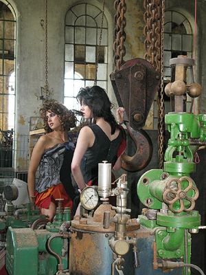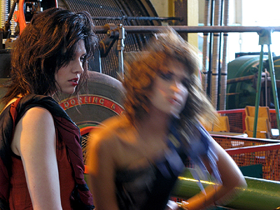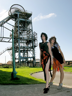 MichelleSerrechia modelling 'Florence No.2'; Natasha Lawrence with 'Ladysmith'; both with winding engines at Haig Pit |