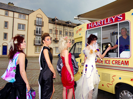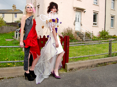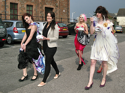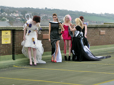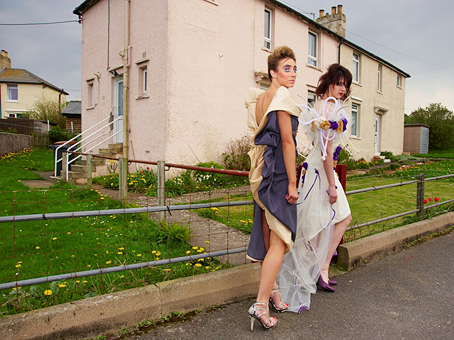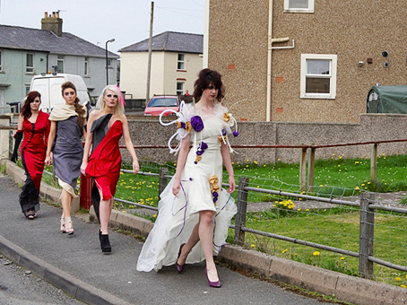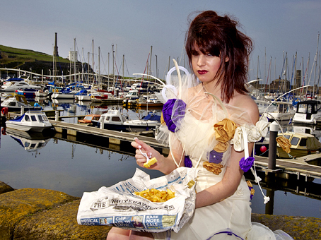 PRESS RELEASE: ROYAL WEDDING FASHION SHOOT CHALLENGES ORDINARY GIRL Avant-garde fashion designer, Angy Morton, has staged an unusual fashion shoot to pose the question, "What if the heir to the throne had really chosen an ëordinaryí girl to be his bride?" Angy says. "We constantly hear that Prince William is marrying an 'ordinary girrl' but, despite all the hype, Kate Middleton isnít exactly Miss Average, is she?" "My bride is an ëordinaryí girl, from a modest background and upbringing on a council estate. She is independent, free of inhibitions, and unafraid to express her own creativity and style." The fashion shoot revolved around a series of crazy cameos, from the bride leaving home, catching the bus to church, and eating fish and chips, all set in Whitehaven on the edge of the Lake District. Angy, best known for her unique, couture fashions, also created an Alternative Royal Wedding Dress for the event, a design which strikes a balance between tradition and innovation. "Expectation is that Kateís dress will be created by a British designer, but it is likely to be more conservative than cutting edge. She has already been criticised for her lack of style by Dame Vivienne Westwood, and will be further constrained by the rules of her traditional upbringing." Angy also draws attention to the high level of talent and creativity in Cumbria, by using aspiring local models, make-up artists and photographers, and to the inspirational backdrop of the Western Lake District for the shoot, an ideal setting for weddings and honeymoons. NOTES Photographs: Brian Sherwen (Colour); Lauren Smith (B/W) Bride: Michelle Serrechia (21) Bridesmaids: Charlotte Gray (20), Natalie Asbridge (19), Natalie Miller (19) Hair & make-up: Bronwyn Deeb and Sara Asbridge, Vibralife Carlisle Royal Wedding buses provided by Stagecoach Cumberland For further information please call Angy Morton on 01539 530648 or 07812 210880 ENDS |